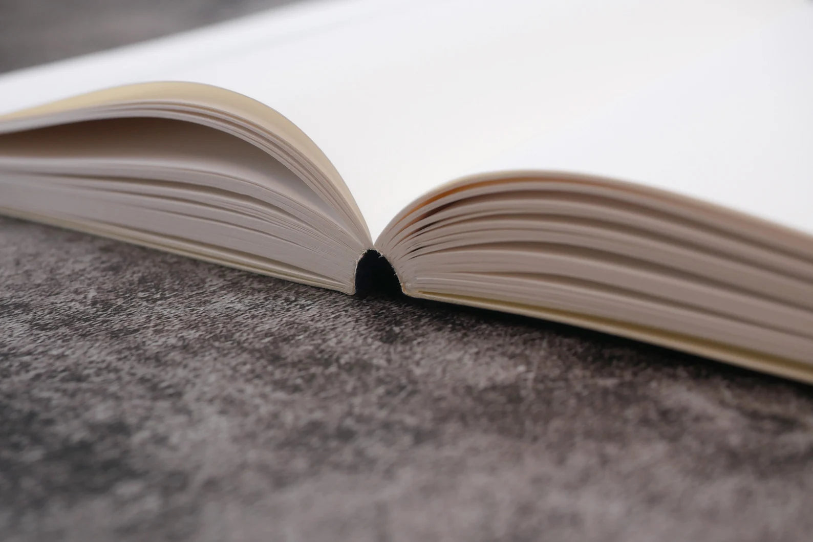 * Soft cover and sewn bound journal reinforced with glue at the spine (in essence, like a case bound book without the hard cover), and when opened, will lie completely flat.